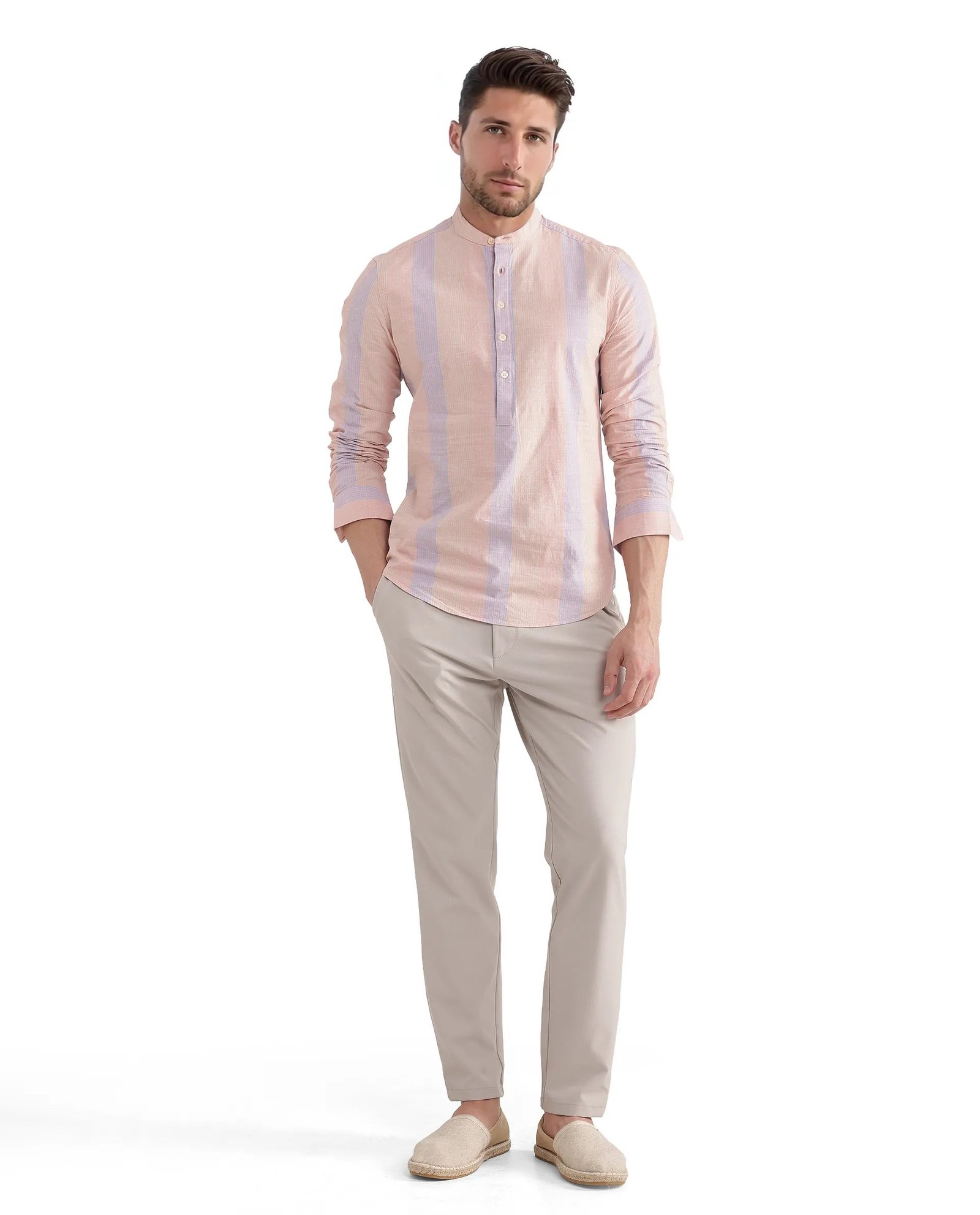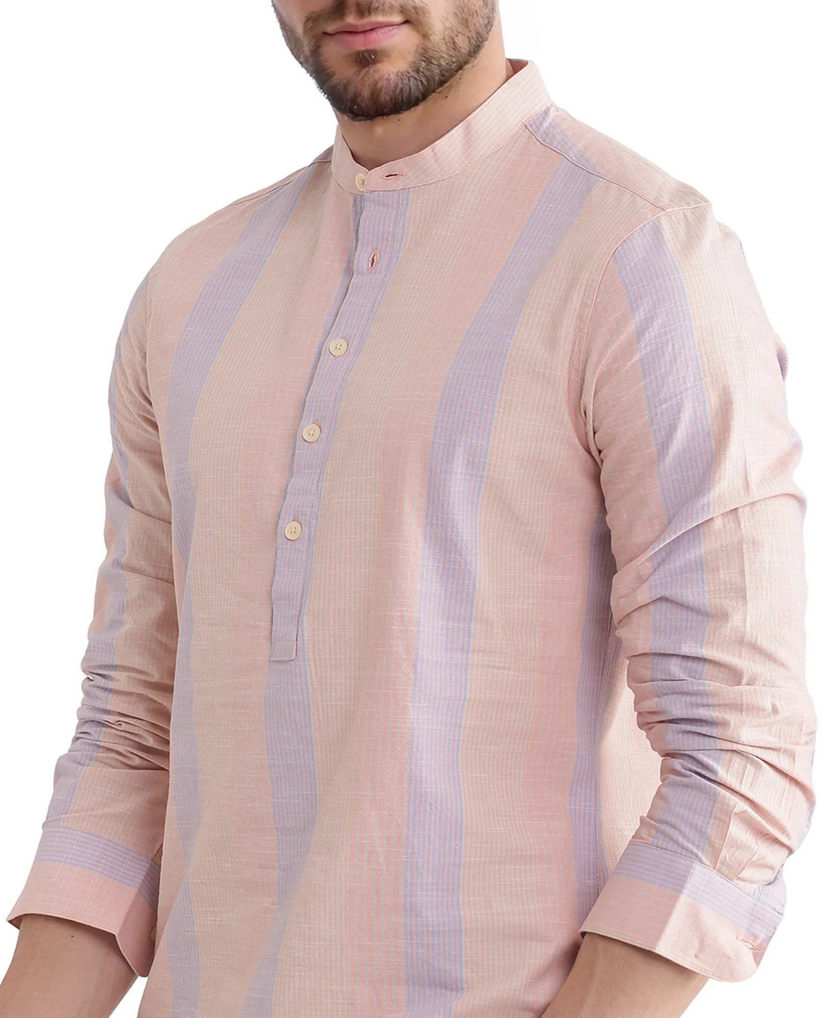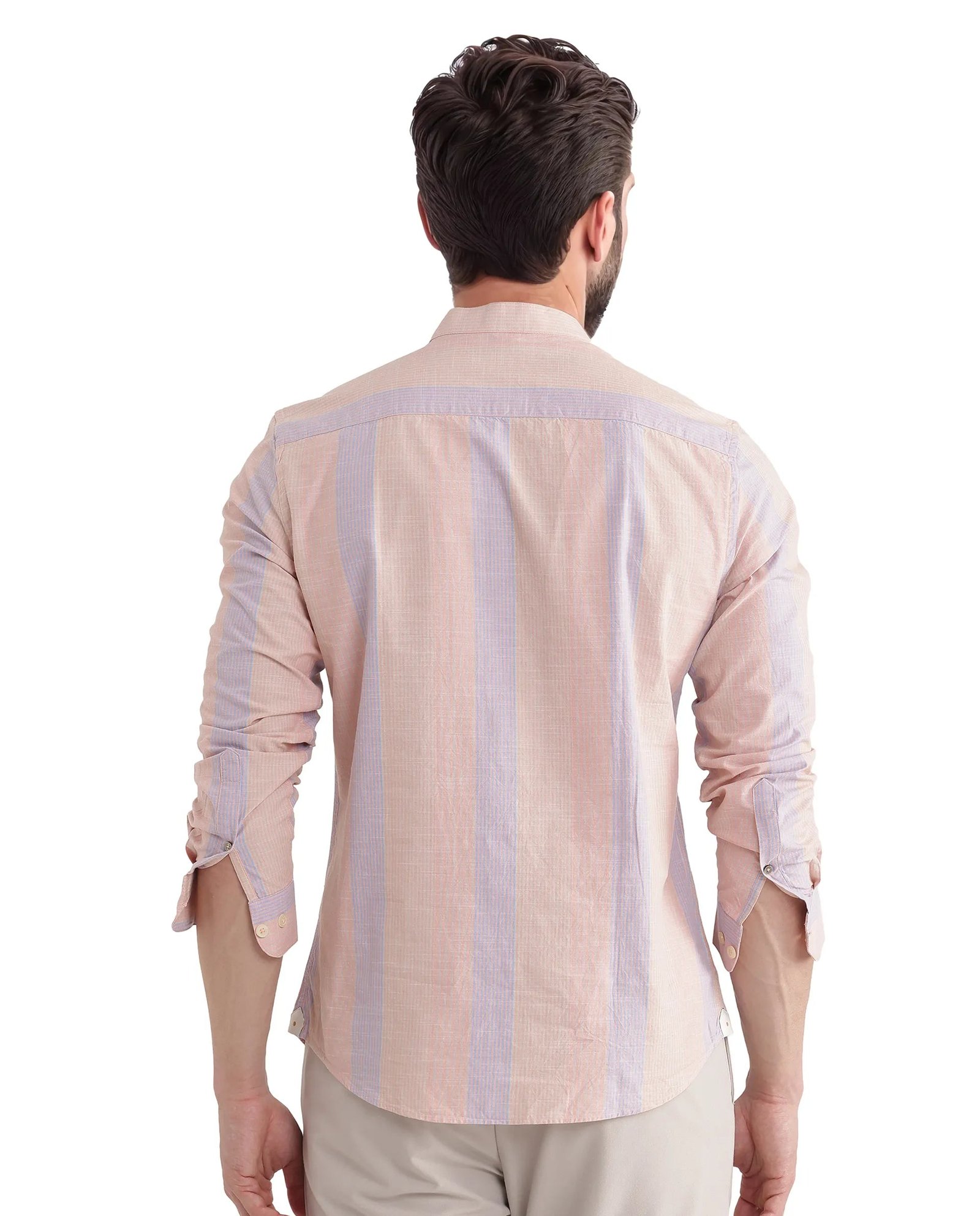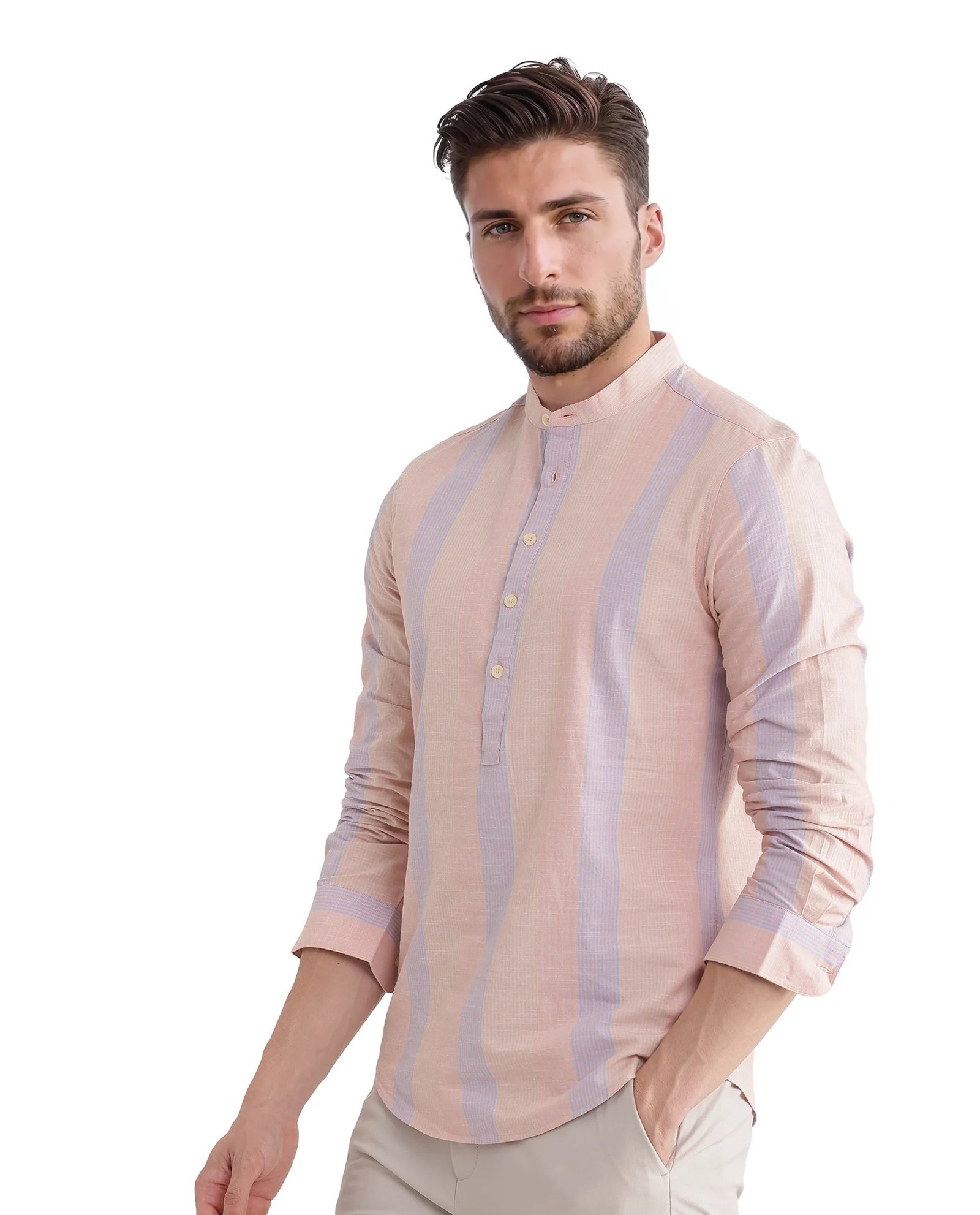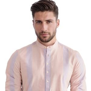 Upgrade your wardrobe with this stylish Stripe Mandarin Collar Shirt. perfect for casual outings. Crafted from premium cotton fabric. this shirt ensures comfort and breathability throughout the day. The button closure and regular fit design offer a sleek and modern look. making it a versatile addition to any closet. Featuring full sleeves and a distinctive mandarin collar. this shirt effortlessly combines classic and contemporary styles. Ideal for both work and leisure. its striped pattern adds a touch of sophistication to your ensemble. Whether paired with jeans or chinos. this shirt is a must-have for fashion-forward individuals seeking comfort and elegance. Elevate your fashion game with this essential piece today.